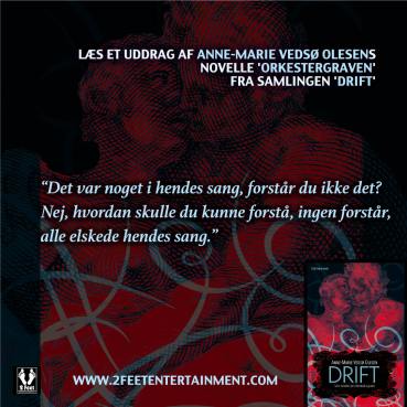 I dag udkommer de digitale udgaver af Anne-Marie Vedsø Olesens novellesamling ‘Drift’, altså både lydbog og e-bog.